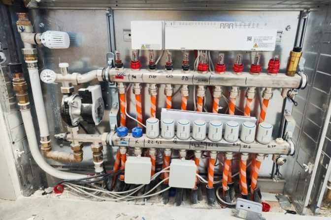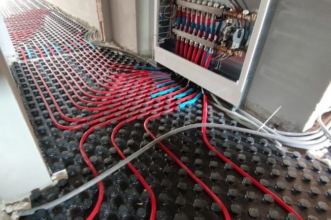 V každej miestnosti 1.-6.NP podlahové kúrenie HERZ na systémovej