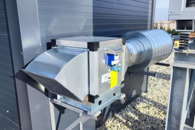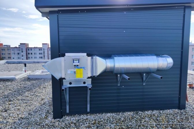 použitím odťahových ventilátorov (Systemair) odvod vzduchu z priestorov (garáž) a prevetranie. Odvod použitého a vlhkého vzduch z kúpeľní a záchodov v bytoch 2 -