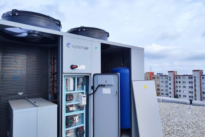 je zabezpečené pomocou 3ks chladiacich jednotiek (chillerov) na streche. Hlavný