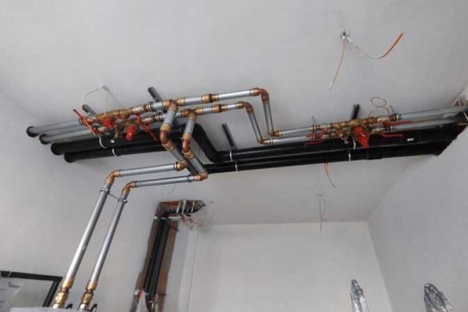a priestoroch 1-6NP z viacvrstvových plasthliníkových rúr a tvaroviek HERZ. Rozvod požiarnej vody pre hydranty – rúry a tvarovky VIEGA Prestabo.